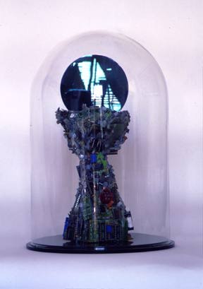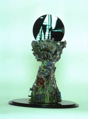 The Chalice is made from Computer Circuit Boards, Silicon Chips, Resin and unprinted silicon wafers (as the wafer).
