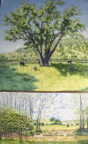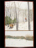 The series I am presently working on, “Calendae: Book of Hours,” is inspired by the small illuminated medieval manuscripts in the Book of Hours which were used for religious prayers. Among other things, these books traditionally contain the most remarkable calendars: “Calendrier des douze mois de travaux a la campagne,” or Calendar of twelve months of work in the country. Each month shows a miniature painting of people working in the countryside: planting, harvesting or gathering seeds, for example. My series also follows the calendar form, but every month has two paintings in oil on wood panel. The larger is a portrait of my family in their work in the country. Below is a small painting that is a different view of the activity at another time or from another viewpoint. |
