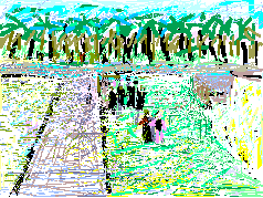 My great anticipation is realized. The hurdle of the Israeli border is past. I am in Palestine. Our path is right through Beisan. Ah! Beisan! I search the sights for the reflections of my heart. The Hebrew sign names it as 'Bet Sheim.' to make it antiseptic for its strictly Israeli residents. The Palestinian villagers have been forcibly evicted to a life of want in refugee camps across the border. Some of the new occupants have skimpy dress and bare bellies but many women wear long black skirts and some have white shawls. Are they trying to look earthy in imitation of the Palestinian peasants whom they replace? Is this a purchase of absolution? I visualize them struggling through the thickness of their guilt.