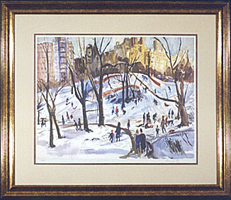 Sleigh riding! Who can forget it? Mr. Tar finds dear romance in the very special things that are part of life. This piece is another one of his most popular. His masterful simplicity captures the colors and contrast of the moment. The setting is New York's Central Park and as with all of his works this wonderful piece was completed on location.