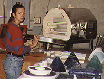 After the clay molds have been fired I put kilnwash on the inside and filled them up with glass. The color usually comes from oxides( cooper carbonate, cobalt carbonate MnO2 are the most common I use) that I sift over the glass as I put it into the mold.