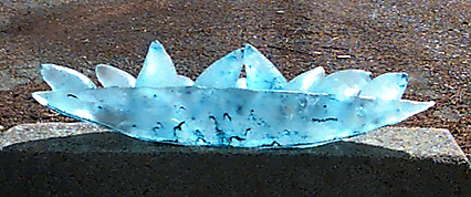 Clay cast glass and sand cast glass, slumped together with copper. More copper added later