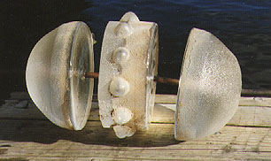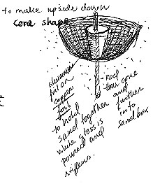 I had been experimenting with copper tubes and wire in my kiln work at CCAC. I was working on linking glass to glass or glass to some other media. I decided to use my kiln glass experiments and apply them to the sand cast glass method. Here are some of the results. I look at them as pure experiments and I am still working with what I got out of my stay at Pilchuck that summer. My stay in Kohler gave me an opportunity to work further with these forms in a different medium.
