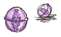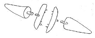 The three halves are put together by having two different sizes of copper tubes going through the glass parts.