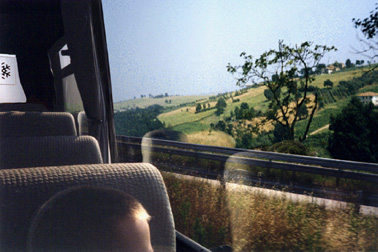 half folded in our bus seats