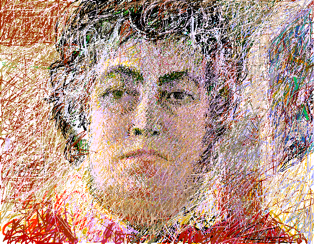 This self portrait was developed online during march of 1995. I posted it while still a line sketch. Every four nights I would work more on it.