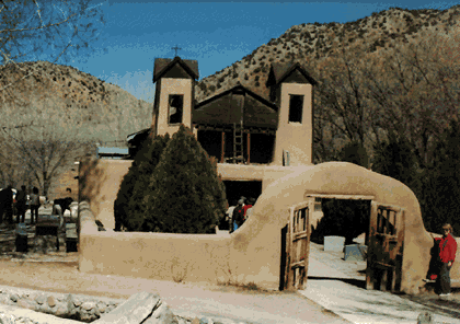 If your mind and heart are in the right place, you scoop up holy dirt from El Pozito, the sacred room off the chapel. The dirt is periodically blessed to make sure it retains its potency. Around the hole crutches and other artificial devices hang as powerful testimony to the curing powers within. An American Lourdes. The light is low in the little room next to the altar where there are burning candles, artificial flowers, and a dank and musty odor. Outside, the sun shines a bright New Mexico sun.