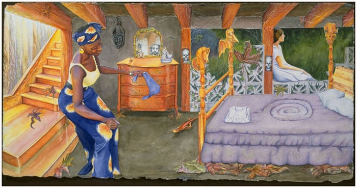 full sized image 757K The Inescapable Fate watercolor, acrylic on paper 11.5 x 22.5 inches original painting and reproductions available |