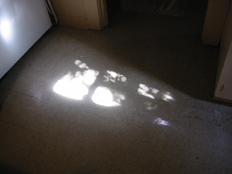This image was projected on my kitchen ceiling at the time of the date stamp above... one afternoon. The source came from the light that was bouncing off the kitchen floor... And the light source that produced it was the sun streaming through the kitchen window. The tree image was not produced by myself but instead the sun... and hence I call it natures' art. These images have not been altered... and except for sizing, are in their origional form.