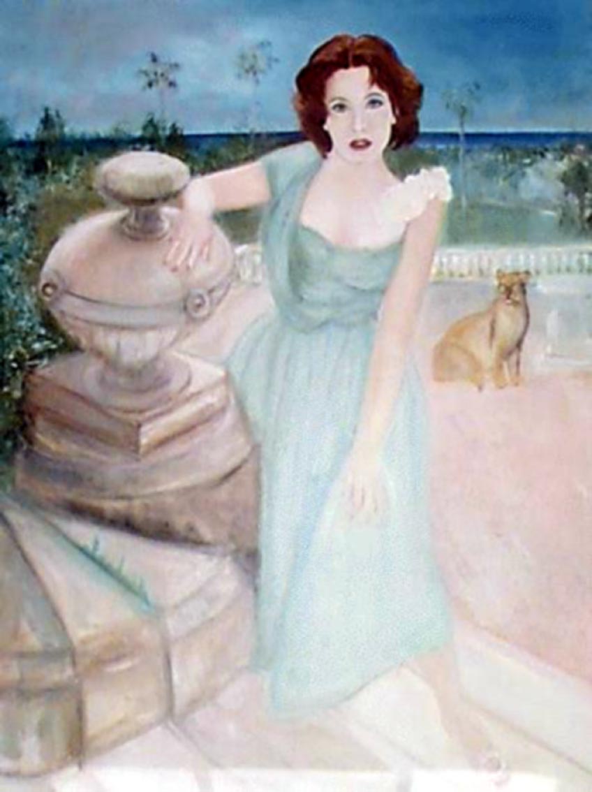 A 30" x 40" oil on canvas portrait that I painted of Emilie, my mother, as she stood on the terrace of the Villa Mariposa, overlooking the Mediterranean